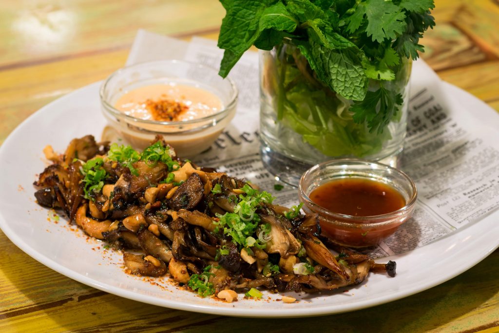 Move on to the Mushroom and Cashew Lettuce Wraps, a dish that owner Liam Dwyer says is popular among his non-vegan diners as well. Spoon sautéed wild mushrooms with fresh herbs into the Bibb lettuce cups and top with one of the sauces served with the dish, a savory cashew sauce or one with a kick.