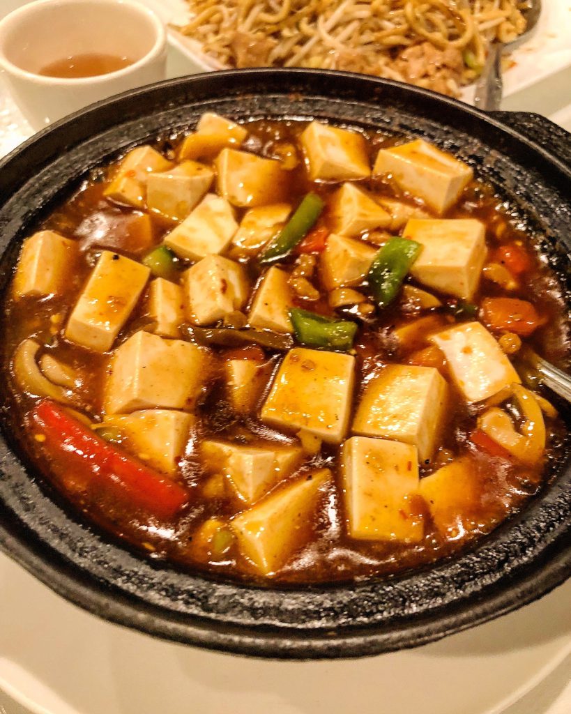 Sizzling Mapo Tofu from Nature Vegetarian. Photo by  @the_bizerkeley_vegan.